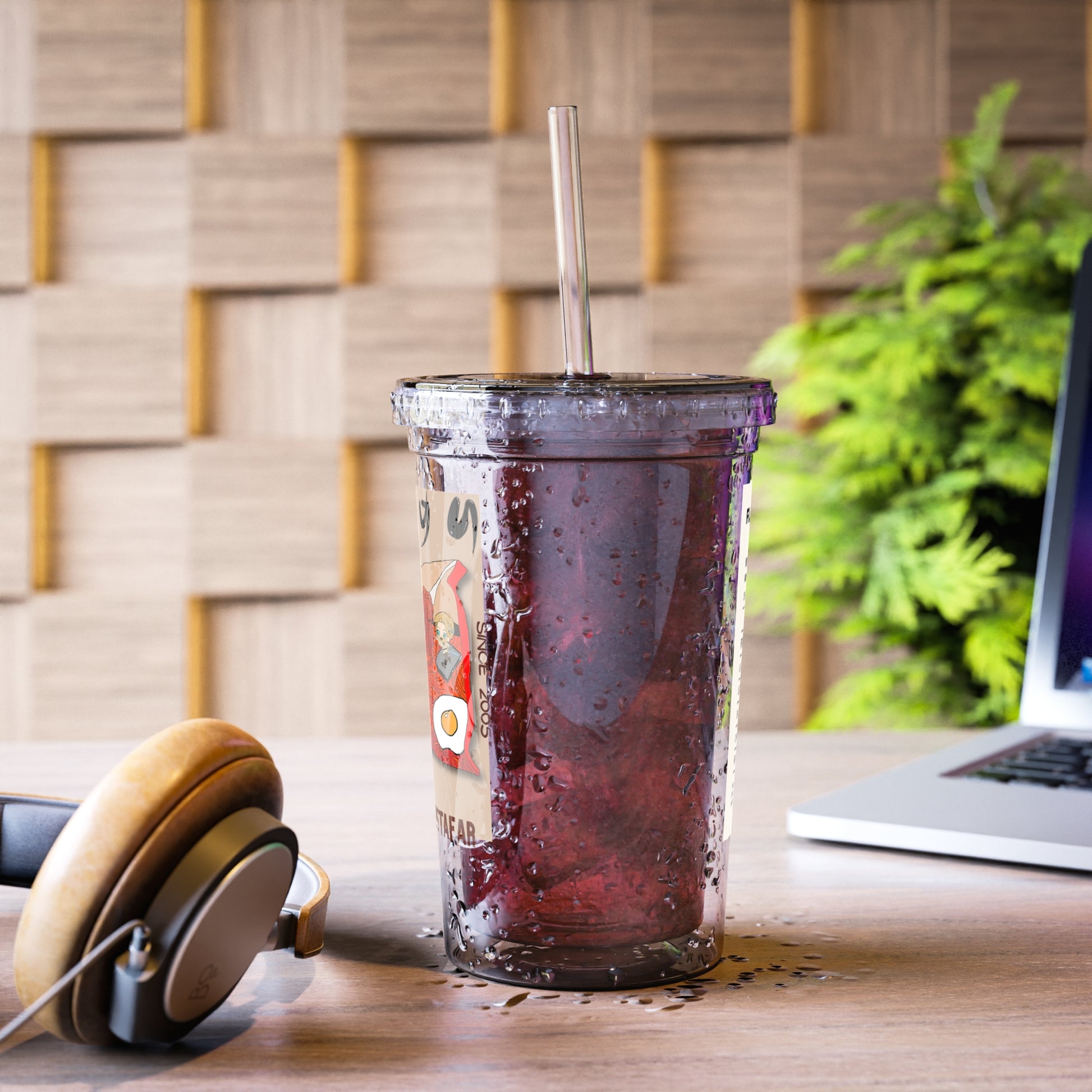 Made for grabbing beverages on the go, this double-wall insulated acrylic cup will keep cold drinks cold for 24 hours and hot for 12 hours. he cup, the plastic lid, and the straw are all BPA-free.